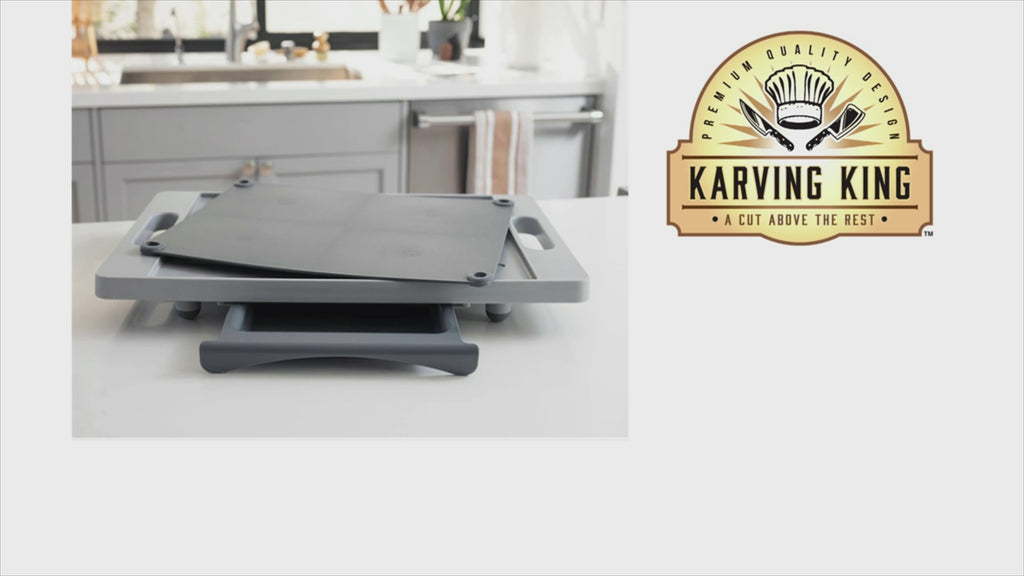 Your Karving King Deluxe system also includes a full-sized supplemental cutting board which enables you use it while in the main board or use it directly on the countertop – perfect for cutting fruits and veggies.